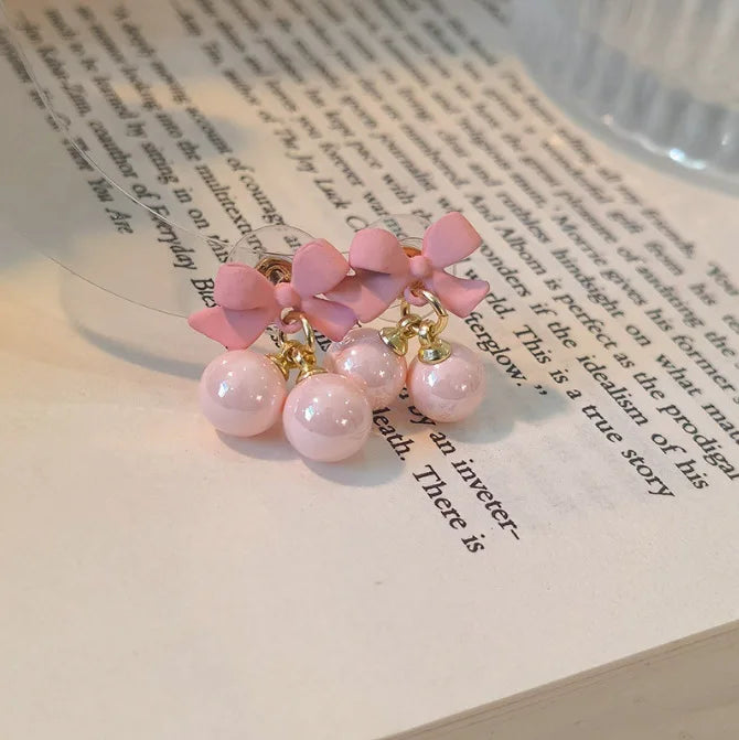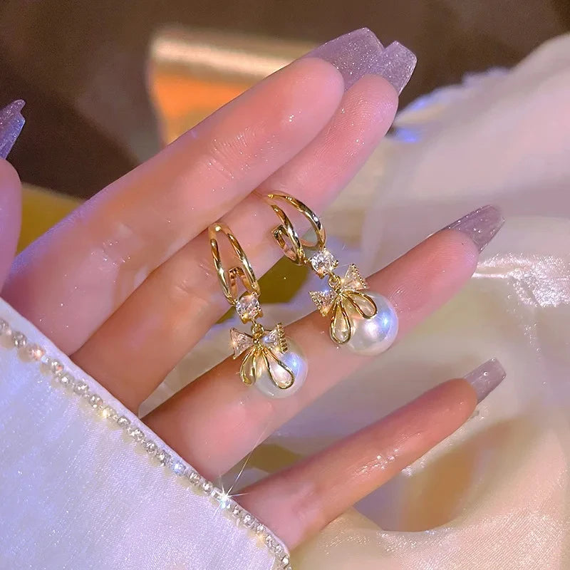 Add a touch of sweetness and elegance to your look with these Bow Knot Round Pearl Pendant Earrings. Featuring a dainty bow design paired with a classic pearl drop, these gold-tone C-shape earrings are perfect for adding feminine charm to any outfit.