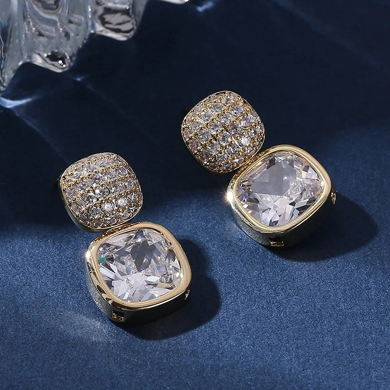 levate your elegance with these Classic Geometric White Crystal Drop Earrings, designed to add a touch of luxury to any outfit. Featuring a striking long square silhouette adorned with dazzling white crystals, these earrings are the perfect statement piece for women who love modern glamour.