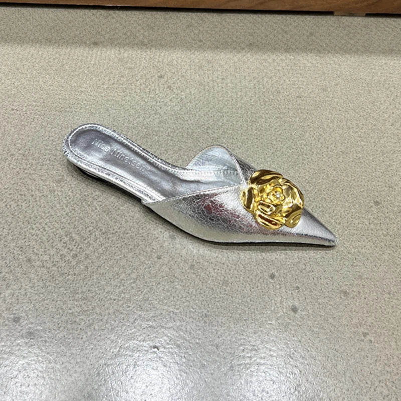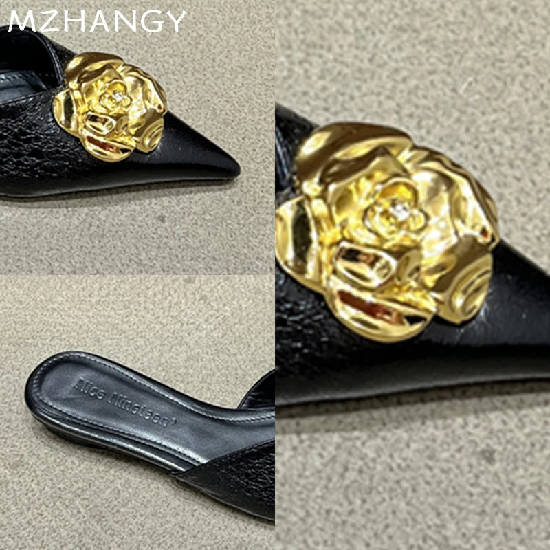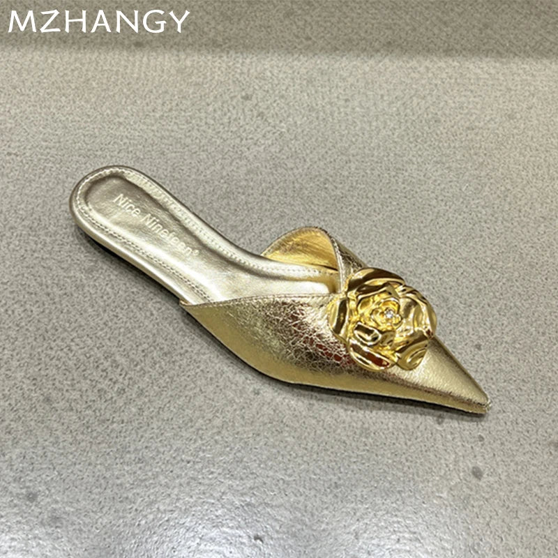 2025 Women’s Floral Pointed-Toe Mules – Elegant Slingback Flat Slippers, Summer Luxury Slides for Women